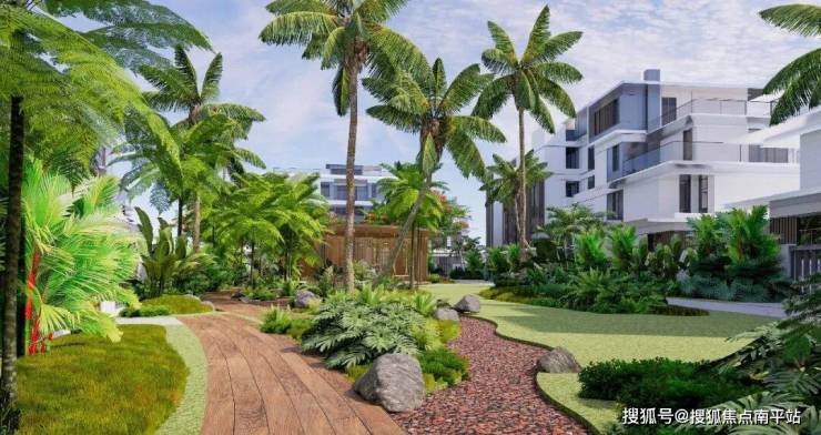 【度假式园林】项目打造五境园林度假式园林,以隐逸式酒店礼序为魂,打造双重归心仪式,一条350米热带风情雨林街区作为绿色主轴贯穿全区,轴线上,三大主题场景依次展开;