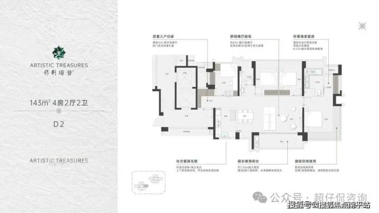 项目南面高区超一线永久无遮挡海景,自带高端酒店式主入口,新加坡双层立体园林,独特的酒店式会所,独梯入户,大尺度大开间户型,保利定制圈层物业服务,满足前海精英阶层的居住所需。