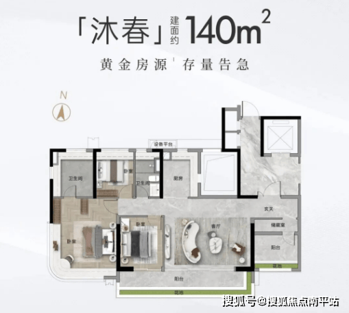 目前项目处于清尾阶段,在售户型涵盖建面约108-140㎡三房至四房,全部带装修交付,总价756万起,部分140㎡工抵房总价低至900万起,性价比突出。