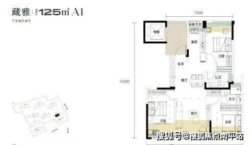 建面约115平的边套三房:分布在1号楼端头边户,3个卧室朝南,餐客厅一体全景舱设计,带独立电梯前室。