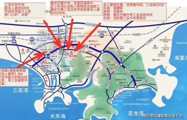 项目位于三亚吉阳区迎宾大道中段,在凤凰岭下,挨着三亚中央商务区,旁边是三亚迎宾学校。