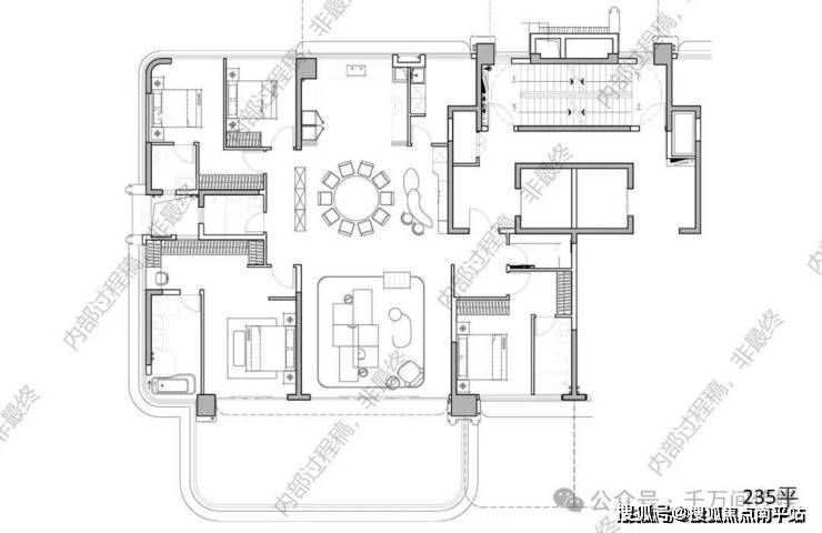·高层四代宅235㎡:四房三套卧设计,类独梯独户,带独立玄关柜;主卧、客厅直连270°一线瞰景大露台。