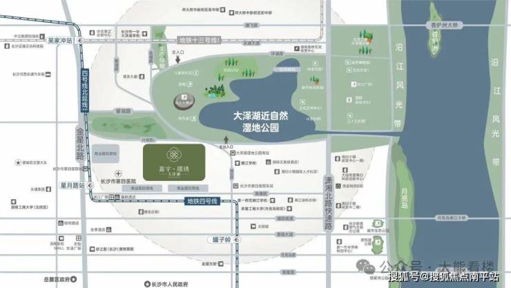 临江可遇,湖岛难求。嘉宇·璟琇以湘江、大泽湖、月亮岛三大自然为核,形成独特的"江-湖-岛"生态优居体系,同享交通、科创、教育、商业、医疗等核心资源。