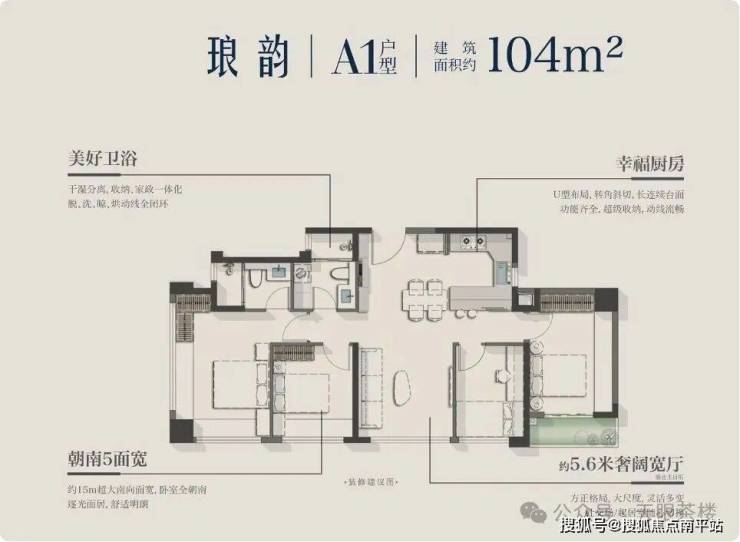 ·约104㎡户型,作为五缘湾目前在售面积最小的可瞰海户型,坐享与180㎡以上大宅同等的壮阔海景,同时实现了堪比市面上120㎡的实用面积;