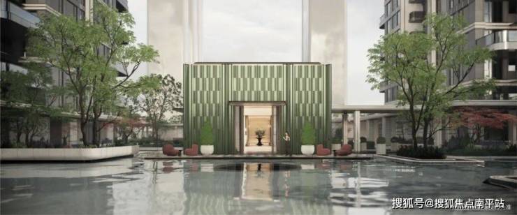 陶板拼接的“水上宝盒”立于镜水之上,多层森系绿植层层递进,形成天然的“声景缓冲带”。从江滩的开阔喧嚣步入水院的静谧清幽,一步一境间,完成从自然景观到生活场景的情绪转换。这正是东方美学“藏与露”的智慧:江景为幕,庭院为芯,让稀缺资源与生活静谧和谐共生。