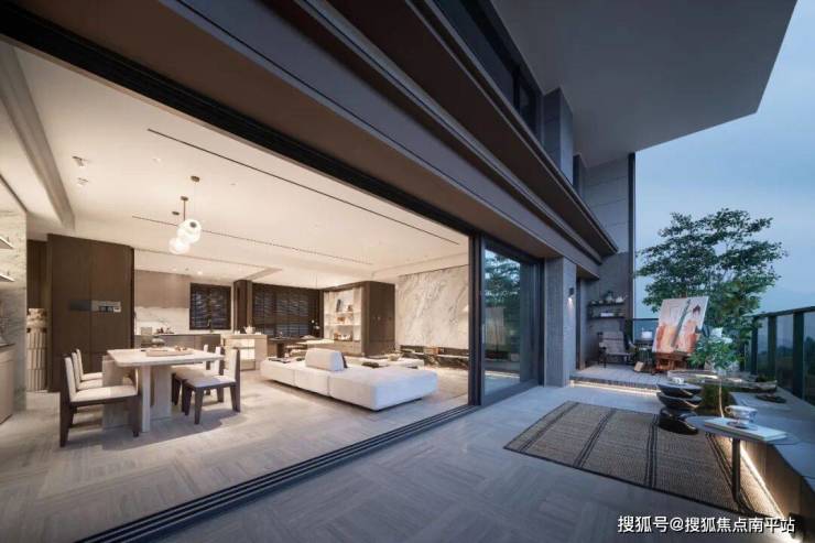 奇偶层通高露台采用南北翻转设计,串联公区、客厅、卧室等功能空间,形成灵动洄游动线,解锁多元生活场景。南侧露台毗邻客厅,精装侧重视觉通透与空间展示;北侧露台连接多功能厅与厨房,精装聚焦功能拓展与场景氛围营造。