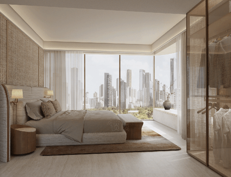 豪华主卧套房设计,面宽达到4米,配置步入式衣帽间,更藏惊喜的是,约270°观景大飘窗,采光、风景一览无余。