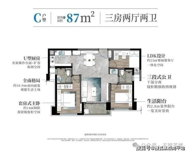 七星湾TOD三期户型,在S墙、L型玄关柜、U型厨房、瞰景布局、窗墙比等方面作了很多优化,加上飘窗可自拓,户型使用率最高能达岛内罕有的约92%。