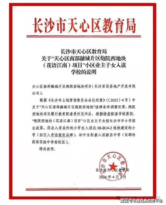 🎓 郡外&青园双超一梯队名校 配套入读2024年4月3日,天心区教育局发布文件,明确说明花语江南业主子女可配套入读青园实验小学和长郡外国语实验中学