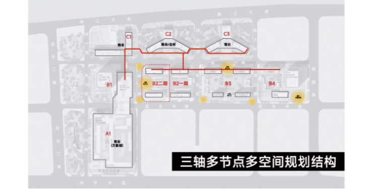 一方面,增加了业主的室外活动空间。另一方面,打通了不同产品业态之间的空中交通。离家、归家,不用受四季、风雨影响。今后,业主不用在地面通行,而是通过空中连廊在建筑之间切换场景。