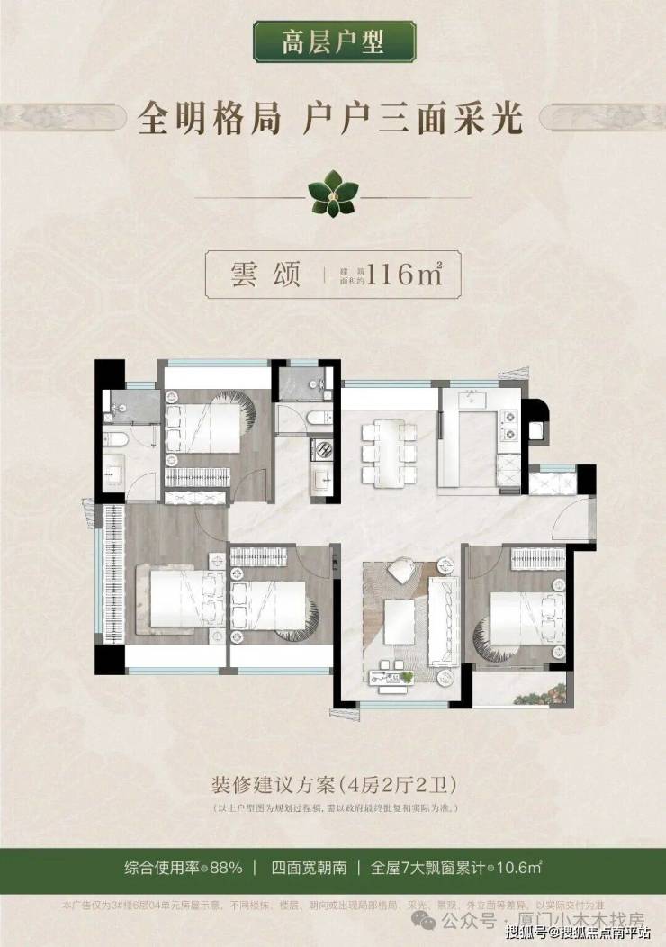 空间设计更显硬核实力。95㎡三房以85%-89%的高得房率,实现媲美110㎡的使用感,4.5开间朝南搭配主卧套间三面采光,阳光与清风成为日常标配;116㎡四房配备L型跑道阳台,部分房源可俯瞰海景,拓展生活想象边界。无论是新婚家庭还是三口之家,都能在这里找到契合的生活尺度。