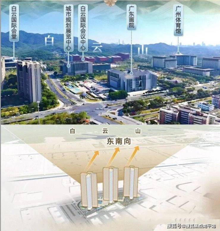 项目位于白云新城核心区,城市界面非常干净,而且 直线距离白云山约1.2-1.25公里,高层户型可推窗见山 。