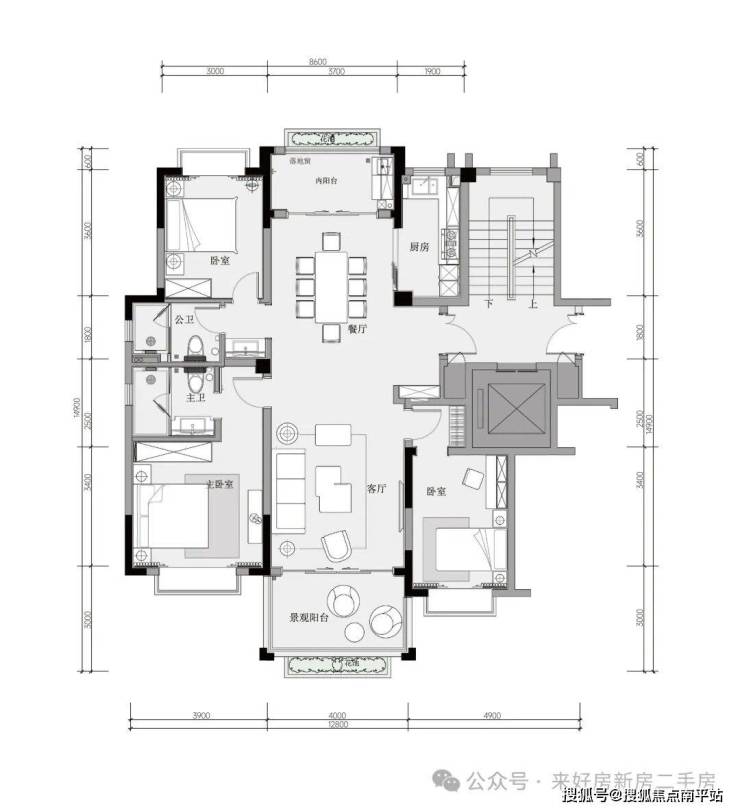 B户型:建筑面积约120平方米三房两厅两卫