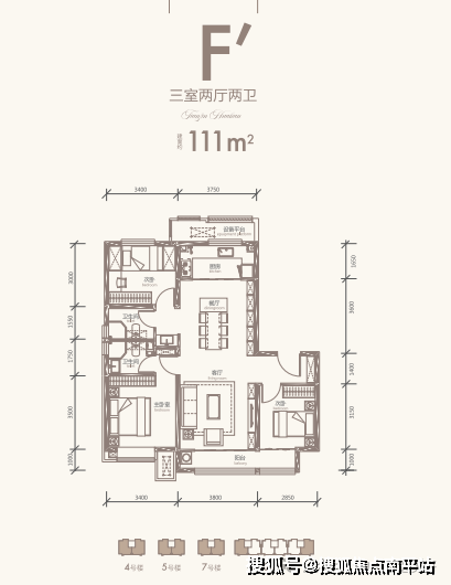 111㎡、115㎡、125㎡和143㎡四种三室两厅两卫产品