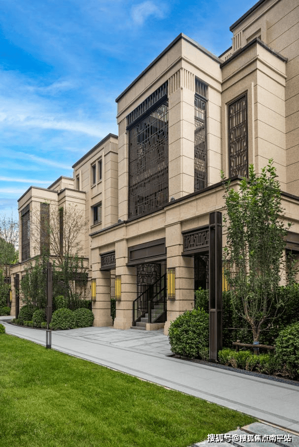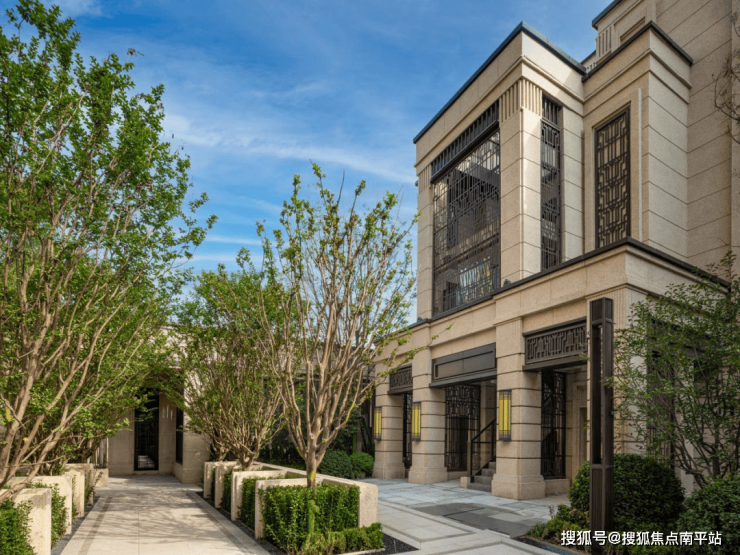 简约、舒展的线条,勾勒建筑肌理,建筑廊檐对标天津五大道的法国浪漫建筑情怀,将传统“孟莎式”的双坡屋顶与现代美学风格融合,并进行创新优化,营造棱角分明的庄重素雅之感。