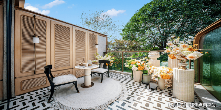 基于项目的地段优势,未来业主在南向露台可将 “三重景观”尽收眼底,具备更为丰富的独家视野优势:向外是辽阔晋江江景 、繁华中央活力区的灯光璀璨以及摩天轮亮灯后秒变赛博夜景等摩登都市风光;向内是宋式园林景观以及自己露台小花园。这样的景观视野才能将四代宅露台的价值拉满。