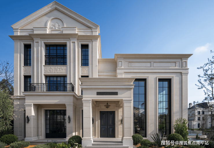 同时,建筑审美本身即是长期价值。 100%保加利亚莱姆石立面,在精密“螺栓锚固”工艺下历久弥新; 瑞士极窄边框钢门窗系统在扩大窗地比、引景入室的同时,确保了超凡的气密性与稳固性; 科肯金属瓦与二次屋顶框架系统,则让经典的法式坡顶兼备美学与绝对可靠的防水、隔音、隔热效能。