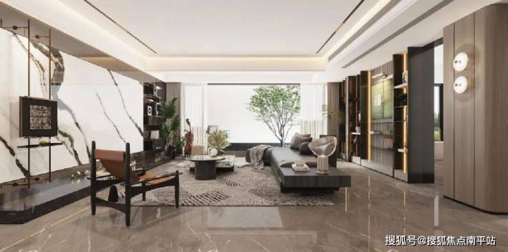 1)酒店式入园大堂——为彰显住区品质,项目主出入口,我们打造了高端酒店式入园大堂,整体轻奢精装大堂,大堂9米挑空的空间感,缔造归家礼序,极具仪式感和尊贵感。
