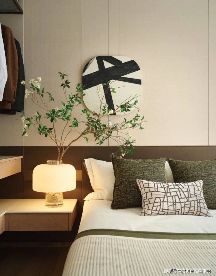 主卧,一抹抹茶色跳脱出素雅背景,像春日新芽般唤醒静谧。