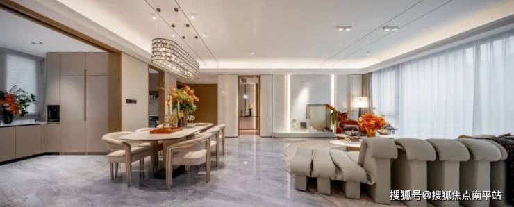 约57㎡LDK一体宽厅、6.7米大开间,五开间朝南、南向总面宽23米,餐厨无缝衔接,可兼顾中厨西厨,实用性与格调兼具。