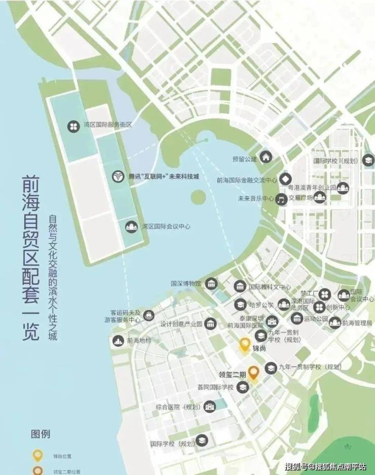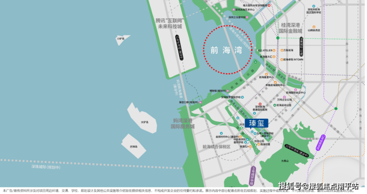 前海瑧玺位于前海妈湾片区,是妈湾2.9平方公里理想城市重点标杆项目之一。妈湾在前海核心三区中特点最为明显,占地面积最大,容积率最小不足 2,两面环海、连山聚湾,与周边大小南山、大铲岛科技岛等形成巧妙的互望空间,是前海唯一背山面海的风水圣地。