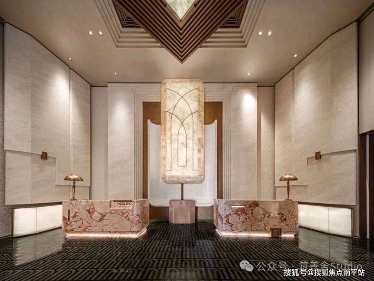 会所内部的空间设计,巧妙融合了艺术化处理与在地文化特色。通过精雕木雕、非遗漆线雕等传统工艺的运用,结合承袭古厝斜屋顶形态的斜面天花和闽南花窗等元素,成功将泉州本土文化符号与现代艺奢美学相得益彰,营造出独特的空间韵味。