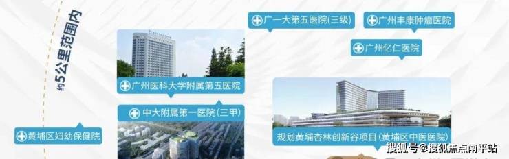 附近几所三甲医院中大附属第一医院(三甲),广医大附属第五医院(三甲)、黄埔区中医医院、广州市黄埔区妇幼保健院等,都在2公里之内。