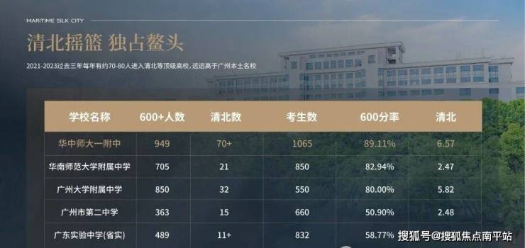 2021-2023年,华中师范大学第一附属中学每年都有约70-80人进入清北等国内顶级高校。这个数据很恐怖,拿广州神学院华附来说,每年进入清北20-30人,广东最牛的中学——深圳中学2023年进入清北的49人,广大附中也只有15人,差距比较明显!