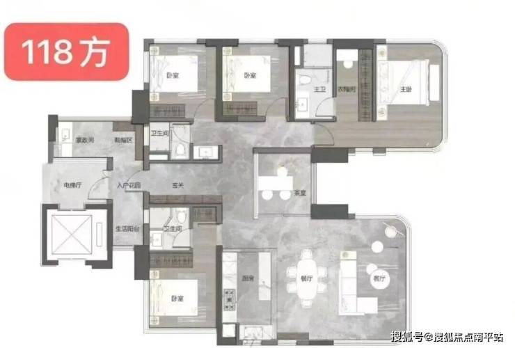 【澜序丨建面约141㎡全景舱户型 五空间两厅四卫】