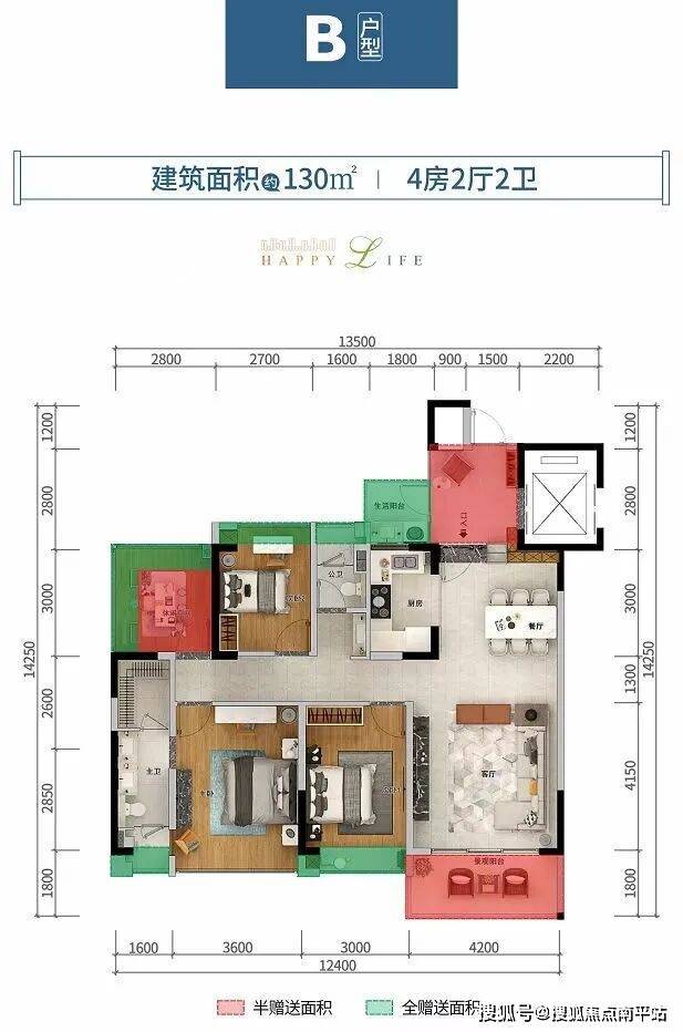户型看的方方正正,还有半面积赠送,看着还挺吸引人,谁不希望花同样的钱能得到更多的使用面积呢?