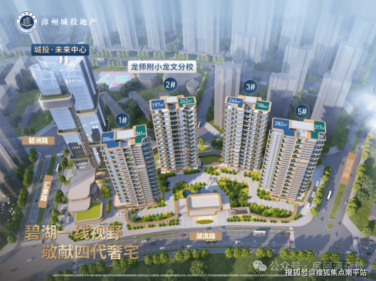 由福建漳州城投集团(漳州城瑞地产有限公司)开发,面积186-317㎡,四房&五房。规划216席空中院落大平层、1栋地标性商务办公空间