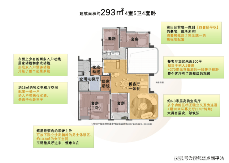 小编第一眼看到这款建筑面积约 293㎡户型时,就被ta的越级获得感所震撼。