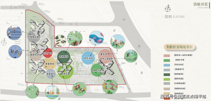 包括 引力广场、青春营地、智慧悦动场、颐养花园、森林剧场、森氧客厅、童梦岛及泳池等设施。