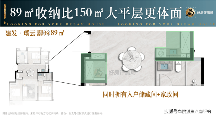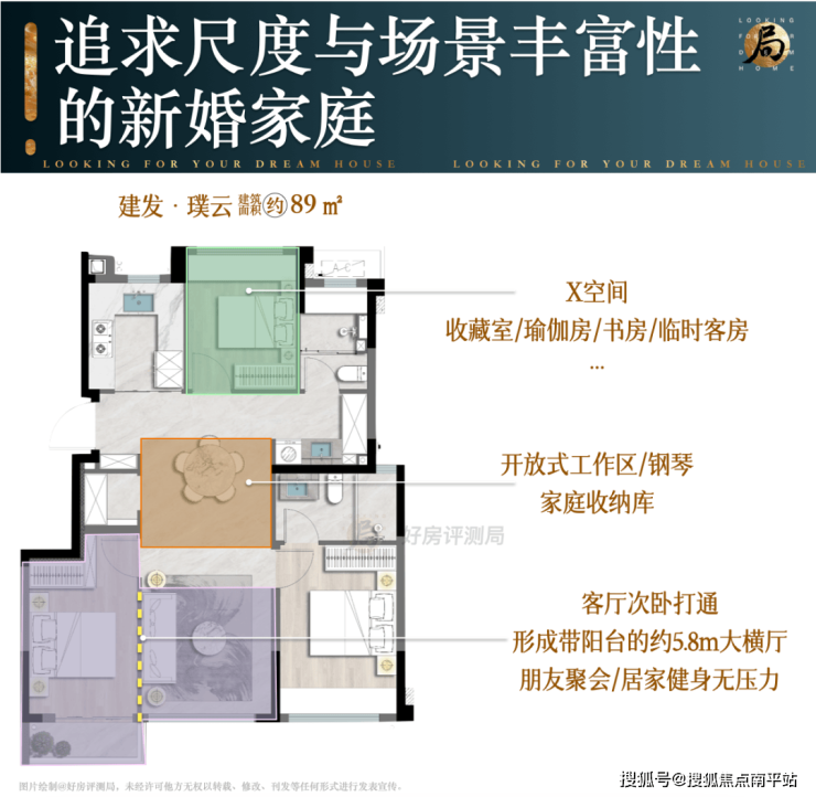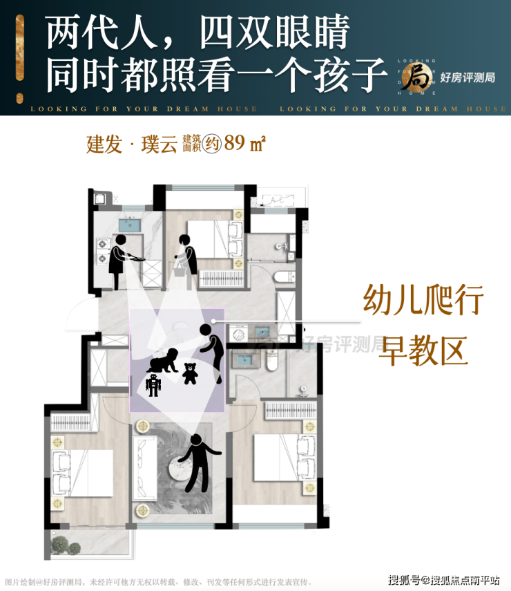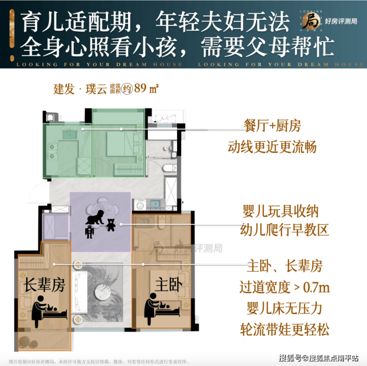 相比传统户型一套模板打天下,建发璞云89㎡提前预设了新婚-育儿-三代同住的全周期方案。