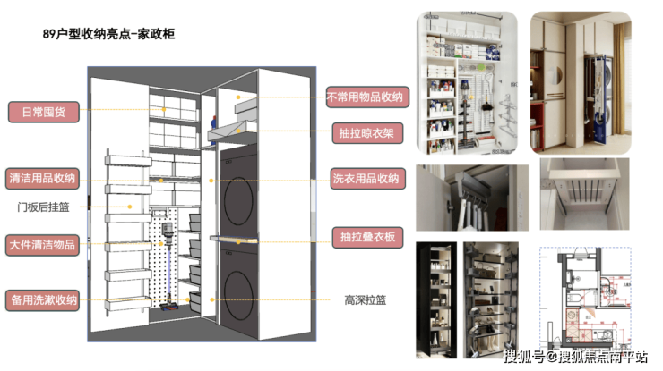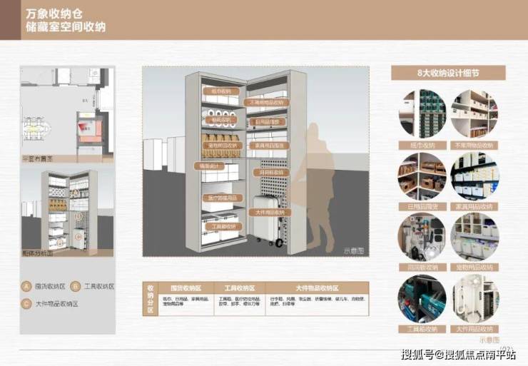 再比如厨房部分,不单是柜子多,更重要的是他甚至连锅盖怎么放,都提前帮你想好了。