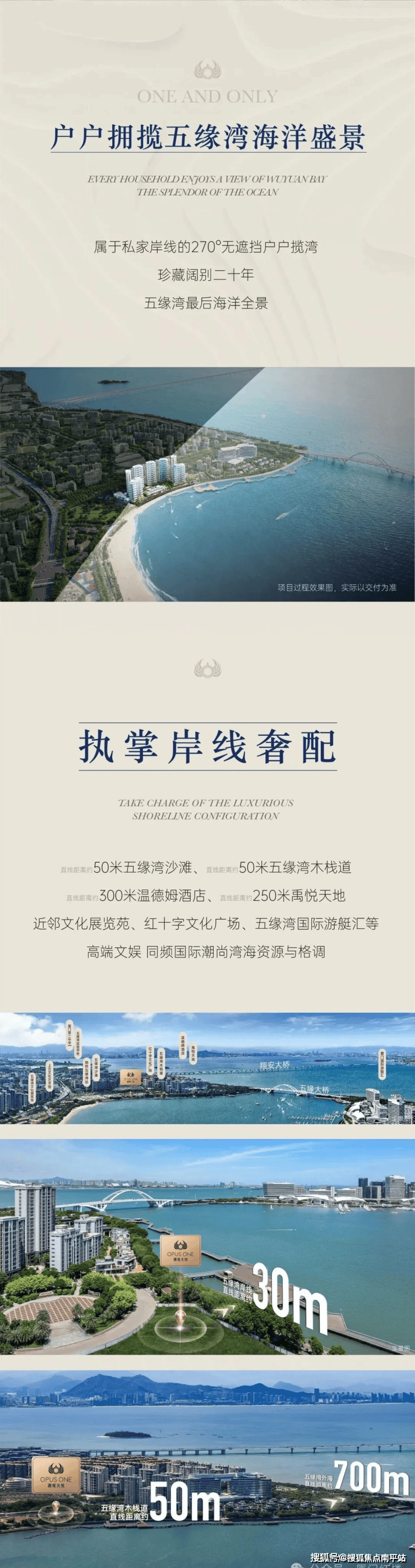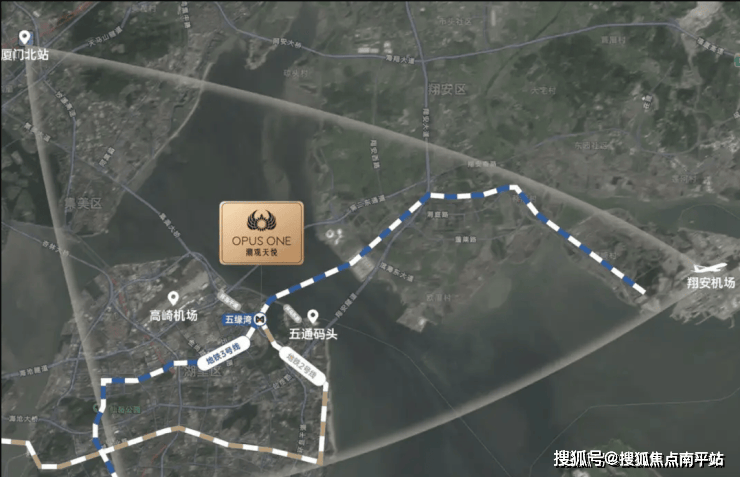 项目坐落于厦门五缘湾一线临海位置,拥有南向约1500米超宽湾景视野,纵距约2000米,与恒禾七尚形成经典"地标对望"格局。