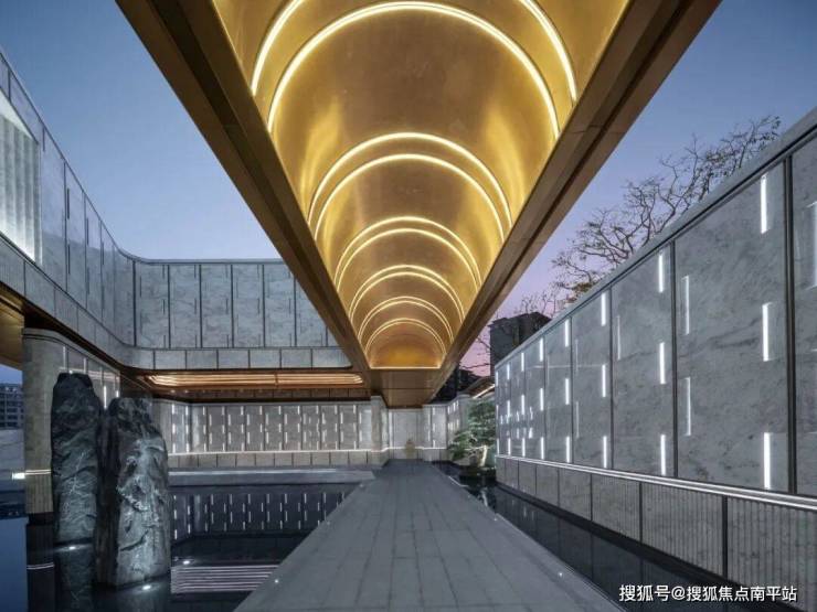 © 具有设计感的天井步入归家长廊,月光灯阵与雾森系统交织出一条光影诗巷,仿佛误入 “云深不知处” 的静谧诗境。