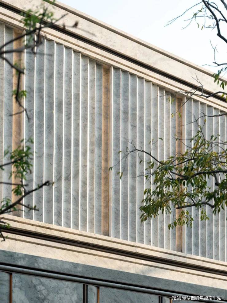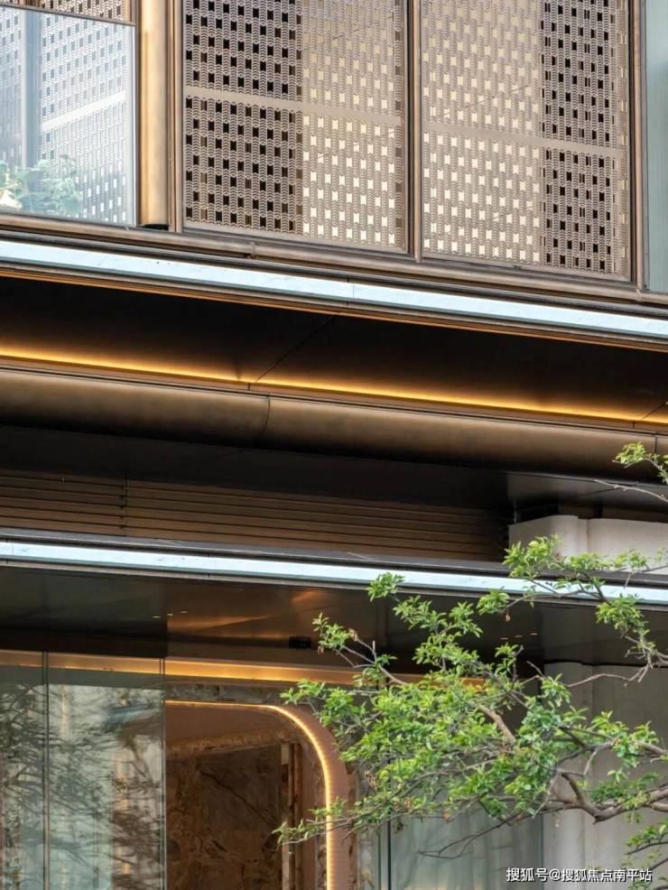 为了更好的表达,我们采用现代简约的框架,选择了皇家翠玉石材、缦云灰石材、天青色陶板和铜纹铝板等材料,它们相互交织,共同构筑出一种现代与东方的对话,既现代又保留了东方气质的柔和与内敛。