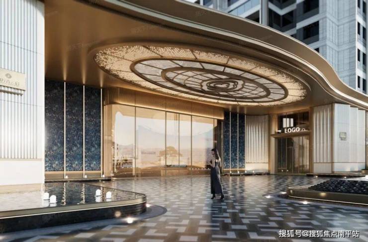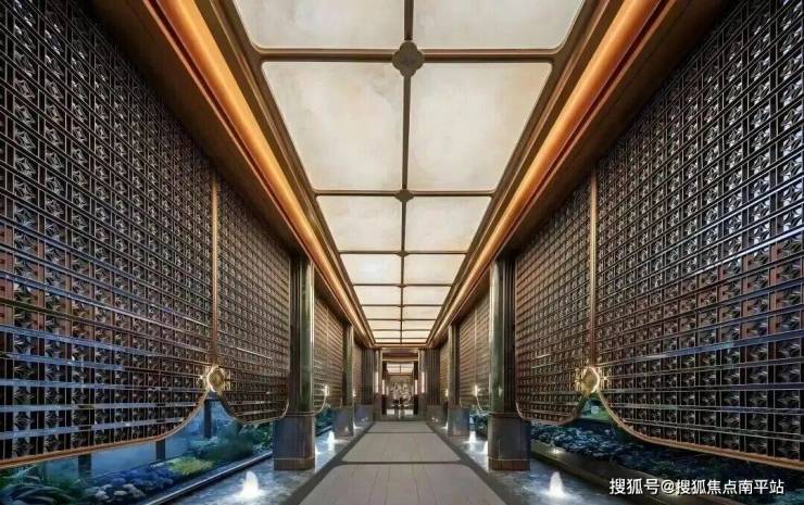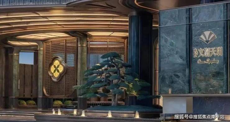 龙曜城·凤鸣的门头,不仅在宽度上领跑城北,更在“高度”上震撼市场。66米宽、13米高的大尺度场域,这种规格放眼整个天津也数一数二。中轴对称的设计,搭配56米宽的悬浮中式飞檐和发光云石吊顶,气度非凡。