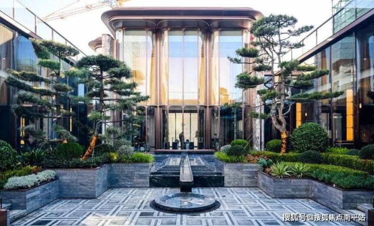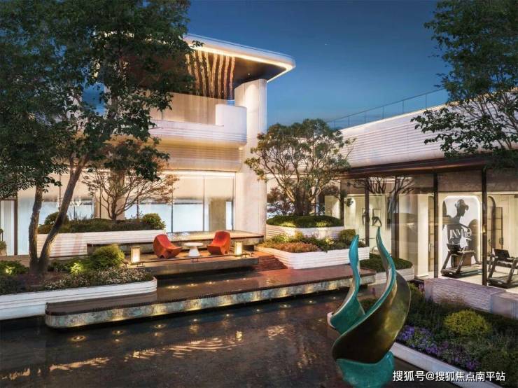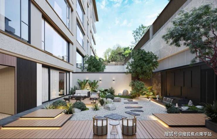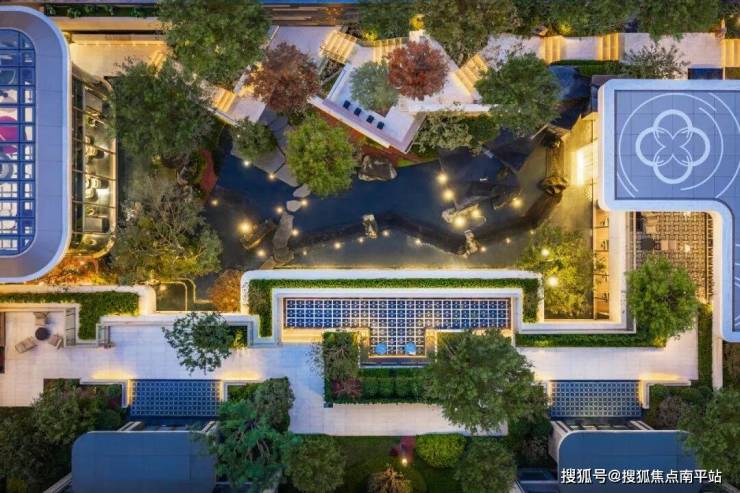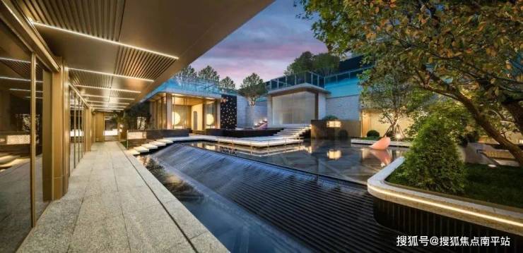 架空平台下,结合下沉庭院、打造奢隐的私家社区生活组团,融合山川河岳的东方园林与私家会所空间,形成生态自然的社区活动空间。