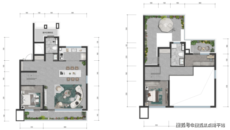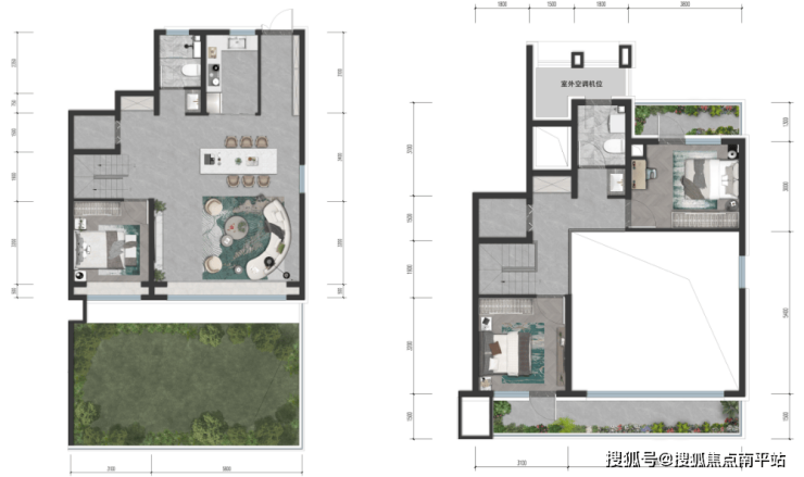 下沉庭院,绿城打破了原本方正的庭院边界,用建筑与植被形成凹凸不平的不规则边界,在此基础上打造出独一无二的庭院景观。相比市面上常规的4.0产品,方方正正的庭院处理手法,无疑更有趣、更高级也更见用心。