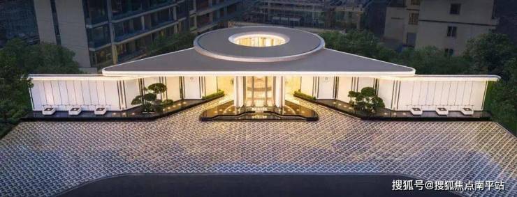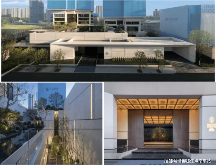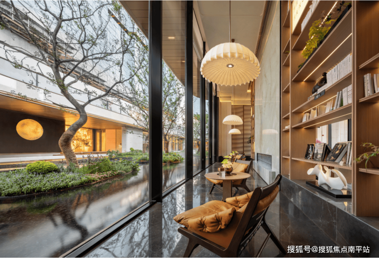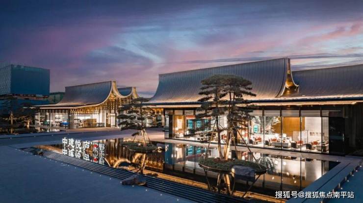 中建悦庐·棠墅营销中心,融合传统东方礼制、书院派园林、水系景观等设计语汇,倾力复刻宋氏飞檐翘角的经典造型,以创新几字形设计,巧妙将“书脊”灵感注入屋脊造型,高达7m的朗阔人文空间与约4.5m高的全落地窗设计,让自然光影流动于方寸间。