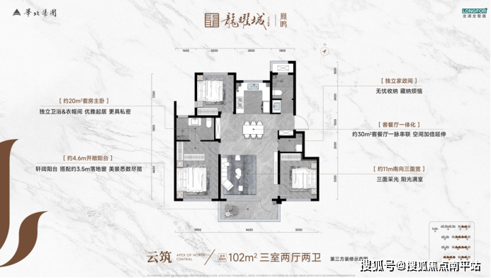 LDK方厅、11m南向面宽、20㎡可拓展空间、100%出房率。
