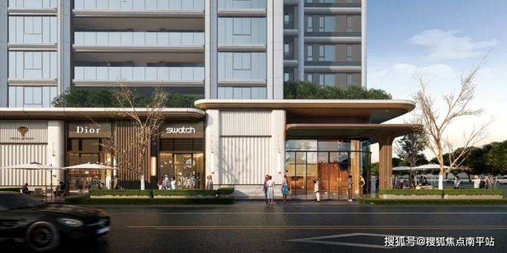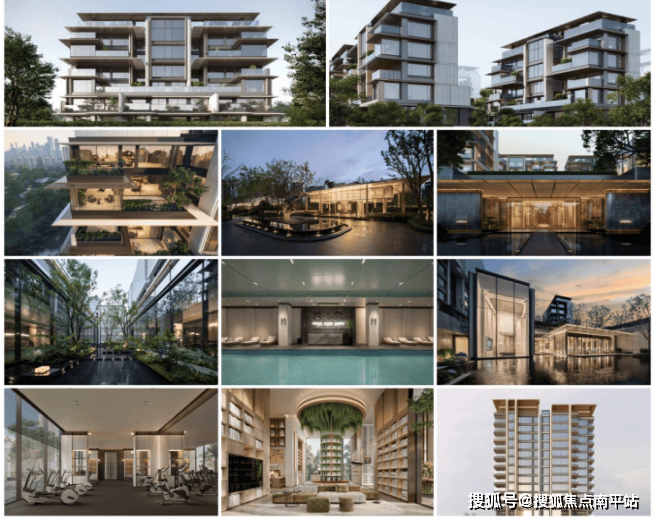 产品风格整体采取了更具有现代感的表现形式,注重表现虚实对比关系,材质的肌理关系,以公建化模式、色彩交织的线条强调立面形象与标志感,由银灰色、香槟金颜色构成,呈现时尚美学的风情与活力氛围。材质上通过大面积玻璃与铝板、石材的结合,精研每一个起承转合,让建筑呈现轻盈、现代的质感。