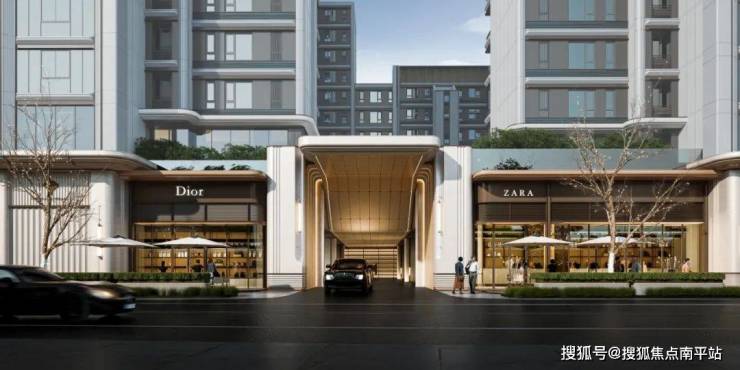 建筑立面采用香槟色、灰色以及米白色等三个主色调,时尚典雅。关键节点和线条上点缀香槟色等跳色,视觉上更具立体感。