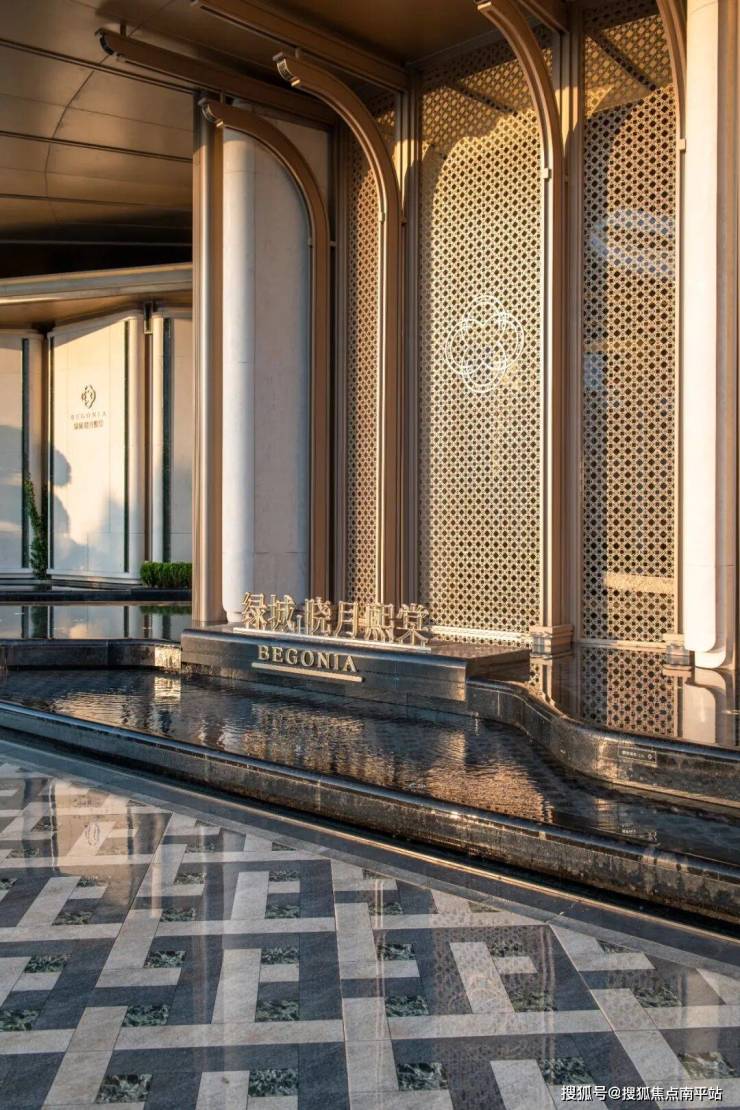 由古铜色铝板与浅香槟金铝板勾勒出「M+水波纹」造型,像给建筑戴了一顶会反光的「礼帽」。这既是呼应项目旁的泮湖水景,也是对金茂满系理念的符号化。