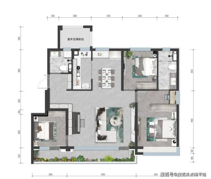 项目五:中铁·卓萃—— 天府新区首个官方认证第四代住宅项目中铁·卓萃占地111亩,396户,容积率2.0。项目核心亮点在于其成熟的:“空中庭院”系统,每户配置约40㎡L型花园,6米挑高搭配“一户一树”交付,将垂直绿化从概念转化为可感的生活空间。在技术层面,它通过错层阳台保障隐私,以双层防水、荷载优化与智能滴灌系统,系统性解决了空中庭院的安全性与实用性痛点,为行业提供了宝贵范本。归家体验上,项目构建了“双首层”动线,结合地上艺术环岛与地下“中央车站”枢纽,实现全程“无雨归家”,完整呈现了新一代高端住宅在产品力与人性化关怀上的深度融合。