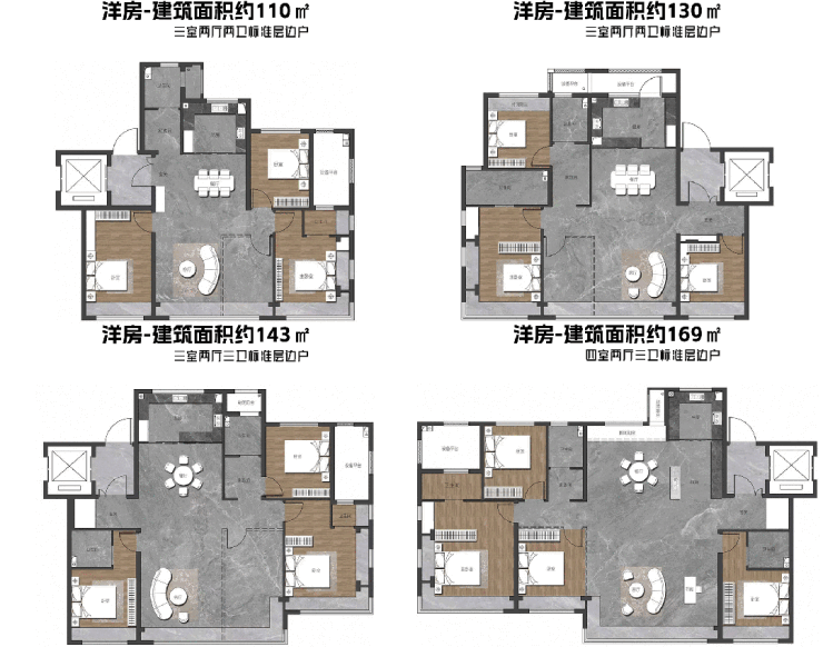 户型:建面约102㎡、109㎡、127㎡、139㎡洋房