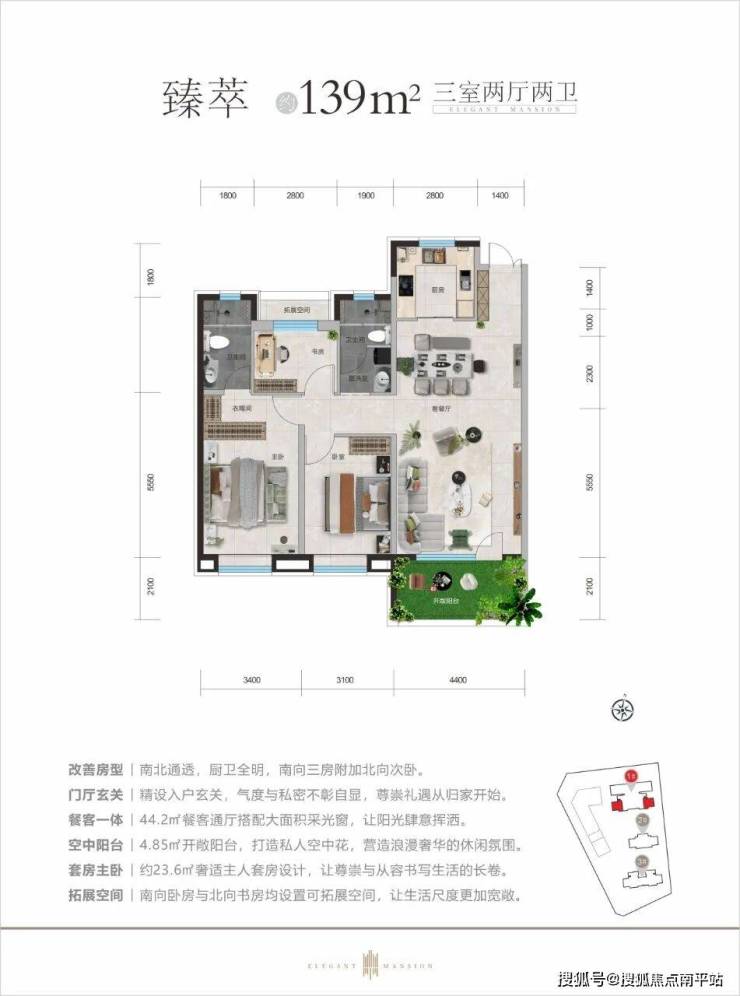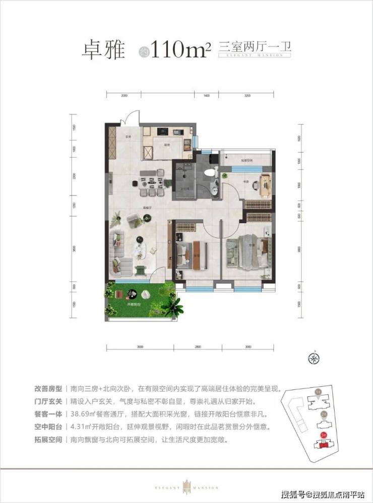➢规划:三室朝南丨3.1M质感层高丨赠送可封闭阳台+可拓展空间