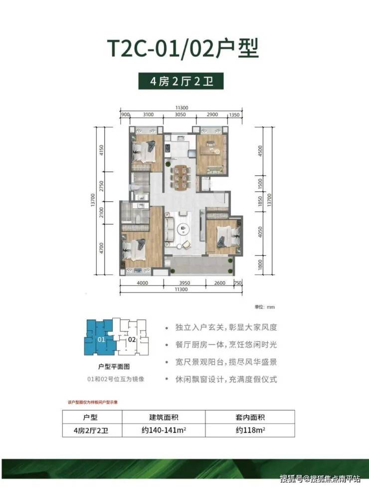 →户型面积段:约110-141㎡(3房/4房)